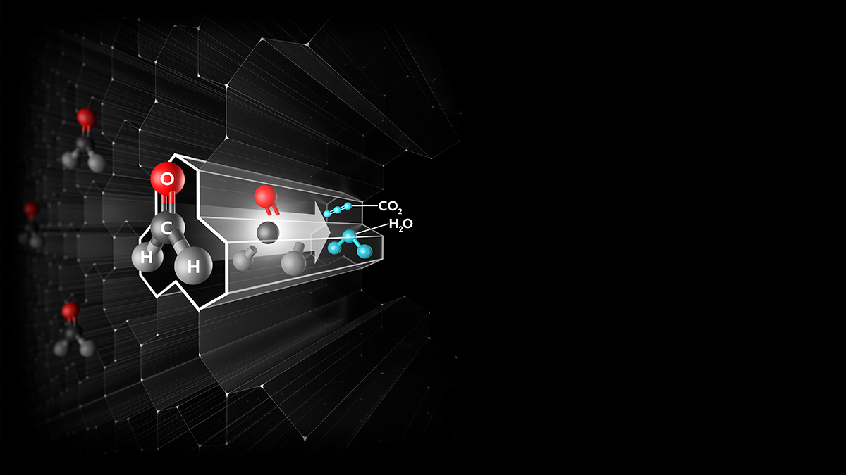 Destroys formaldehyde in billions of catalytic tunnels1Dyson's unique catalytic filter continuously traps and converts formaldehyde into water and CO2. And it self-regenerates, so it never needs replacing.