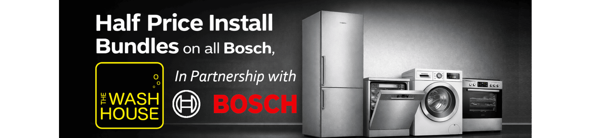 The Wash House are pleased to have partnered directly with Bosch - Offering you half price install and removal bundles on all applicable Bosch products.