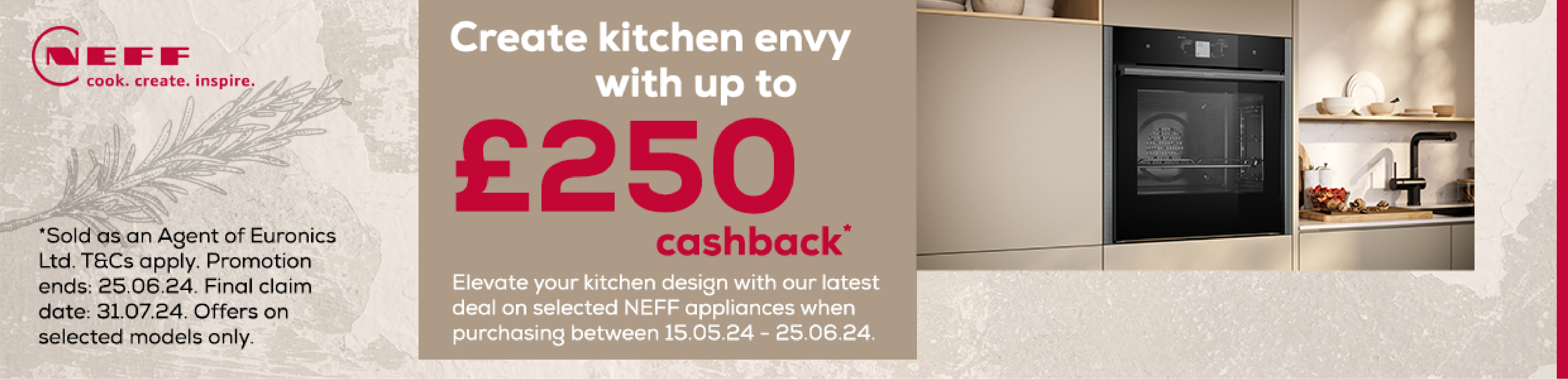 Purchase one of the eligible NEFF products from the list below to claim up to £250 cashback via redemption.